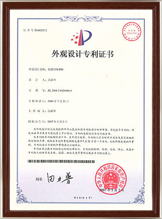 外觀設(shè)計(jì)專利證書
